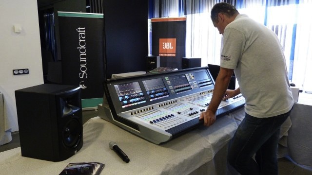 En el segundo espacio, destinado al área de audio, los asistentes pudieron comprobar la sencillez y rapidez en la configuración y conectividad de los sistemas inalámbricos digitales de la serie ULX-D de Shure, así como conocer la última incorporación a la gama digital de Soundcraft -Vi3000- y escuchar en vivo y en directo la revolucionaria tecnología Image Control Waveguide de los monitores de estudio de la serie LSR3 de JBL.
