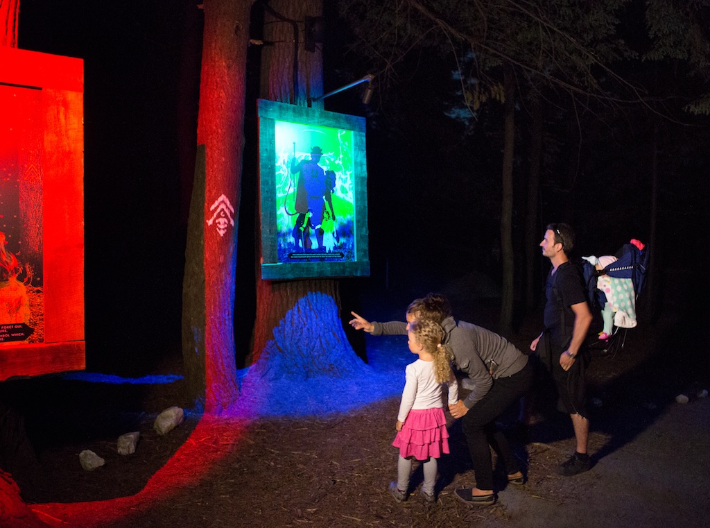 Moment Factory a créé des éléments personnalisés et sensoriels pour chacune des zones de la visite: panneaux métalliques rétro lumineux perforés d'inscriptions décrivant les personnages principaux, petites unités d'éclairage conçues pour suggérer la présence de fées dans la forêt, un écran transparent pour réaliser une projection subtile dans une clairière, un vidéomapping qui redonne vie à un arbre mort, …