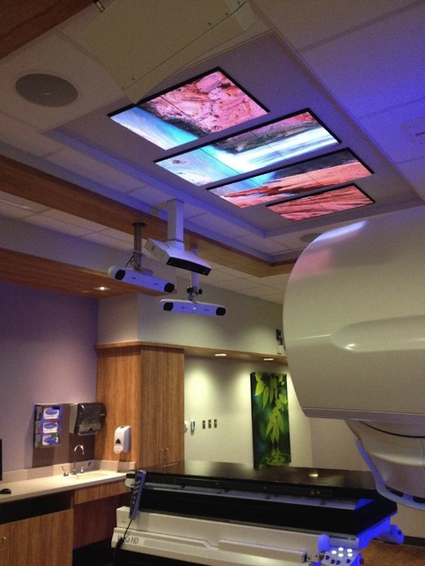 Denominado Skylite y ubicado en el techo, el videowall formado con MicroTiles de Christie, suministrado e instalado por Norvision en el Banner MD Anderson Cancer Center, es el primero de este tipo instalado salas de radiación que se utiliza para mejorar la sensación de los pacientes oncológicos que reciben radioterapia.