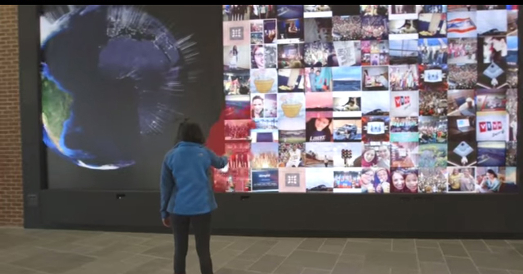 En esta pared audiovisual se muestran fotos de Instagram de los estudiantes de la Liberty University, así como de su personal, utilizando un conjunto de hashtags especiales. Los visitantes de la biblioteca pueden interactuar con la pantalla mediante gestos para seleccionar las fotos y ver detalles adicionales, gracias a la tecnología de Kinect.
