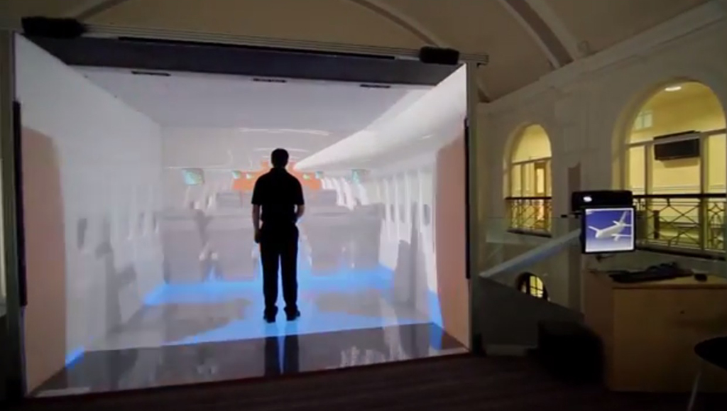 Virtalis a doté ce centre pédagogique de sa version de Cave au format quadriface et de dimensions 3×3 métros, en utilisant la technique de rétroprojection.