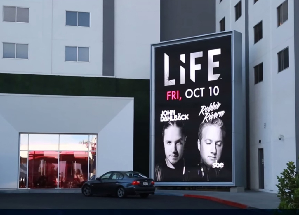 Daktronics fue seleccionado por SBE, propietario del SLS Las Vegas, en association avec KT Corporation, para ofrecer experiencias visuales dinámicas tanto en el interior como en el exterior del complejo. Esta compañía se ha encargado del diseño y fabricación de 12 pantallas que integran un total de 23 millones de LEDs. Daktronics se asoció con Signe visuel para gestionar la instalación de las pantallas de vídeo outdoor en el SLS Las Vegas.