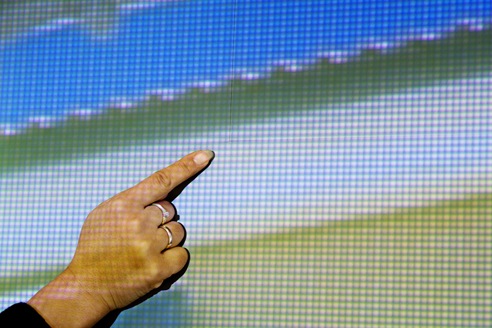 El gran tamaño de esta pantalla se ha logrado mediante la unión de dos láminas de película óptica, con un sistema de armazón especialmente diseñado para mantener el material óptico tensado y que el área de visualización sea perfecta.