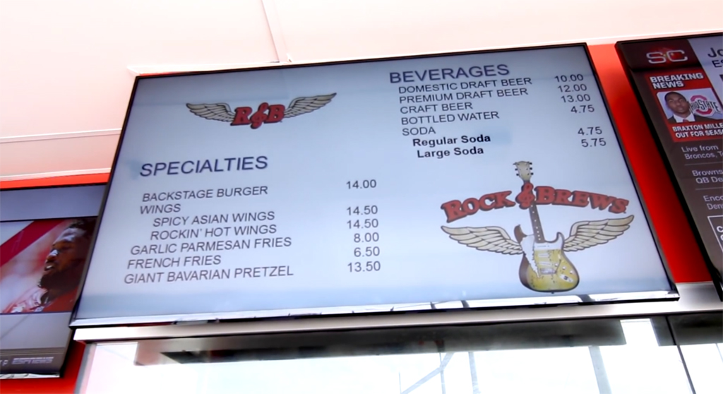 “La vente de boissons gazeuses dans ce complexe sportif est aussi importante que celle des billets, en raison des énormes revenus qu'ils génèrent. La technologie d'affichage numérique mise en œuvre a permis au StubHub Center de créer des combinaisons de menus attrayantes et de les envoyer sur les différents écrans.. Si certaines combinaisons ne fonctionnent pas ou ne sont pas appropriées à ce moment-là, Les menus et les prix peuvent être mis à jour instantanément pour garantir une perte de revenus minimale., commentaires Jason Crémins, PDG de Signagelive.