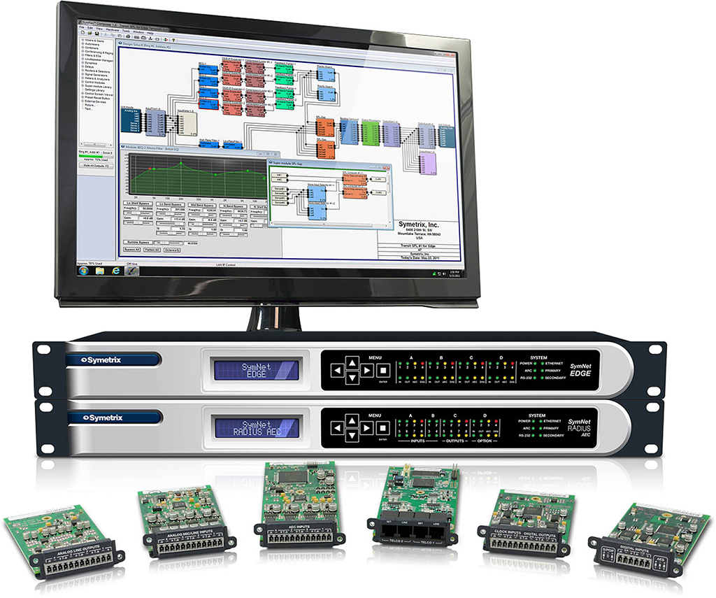 SymNet Composer 2.0 permitía, a integradores que emplearan el SymNet Edge o el DSP Radius de Symetrix, unificar en un mismo software los procedimientos para instalar y detectar redes, enrutar la señal de Dante e instalar dispositivos compatibles de terceros como Attero Tech o Stewart Audio.