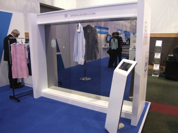 Gesaky Interactive Mirror, dotado con paneles verticales HD de gran formato, cámaras y un sistema inteligente de reconocimiento, interactúa de forma sencilla con el consumidor que se prueba una prenda; mostrando no sólo cómo le queda sino ofreciéndole en la pantalla lateral más opciones de complementos, de colores, estilo y accesorios adecuados a la misma.