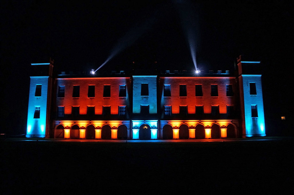 En Syon House se desplegaron 300 Unités SixPar 300 para resaltar los pilares que ofrece el edificio mientras que los Platinum Beam 15Rs se ubicaron en el techo dada su gran potencia. Las Platinum Beams se utilizaron para iluminar la parte superior de Syon House y también como haces de luz que se proyectaban en cielos y podían verse a kilómetros de distancia. El espectáculo de luces fue programado y luego grabado en un montaje en rack Elation DR-Pro Rack, que proporciona una manera segura y fiable para reproducir la presentación de la luz.