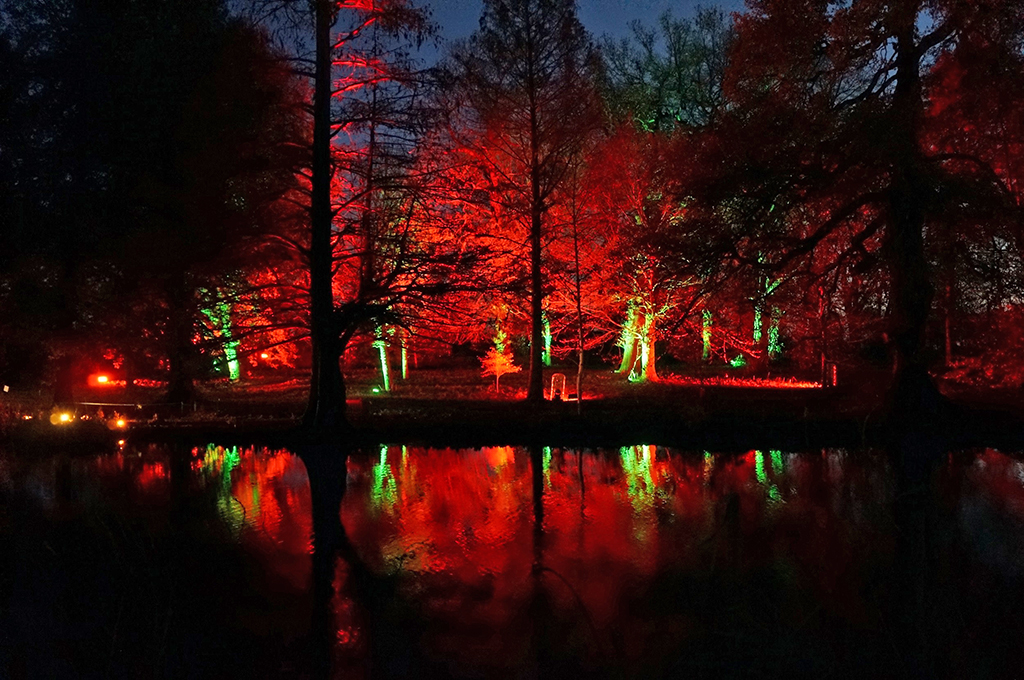 En las noches de noviembre y diciembre, el Enchanted Woodland en Syon Park ofrece a sus visitantes un paseo lleno de luz y color que realza las más de 400 especies de árboles que viven en estos jardines. Un espectáculo en el que se han utilizado los equipos de Elation para su puesta en escena.