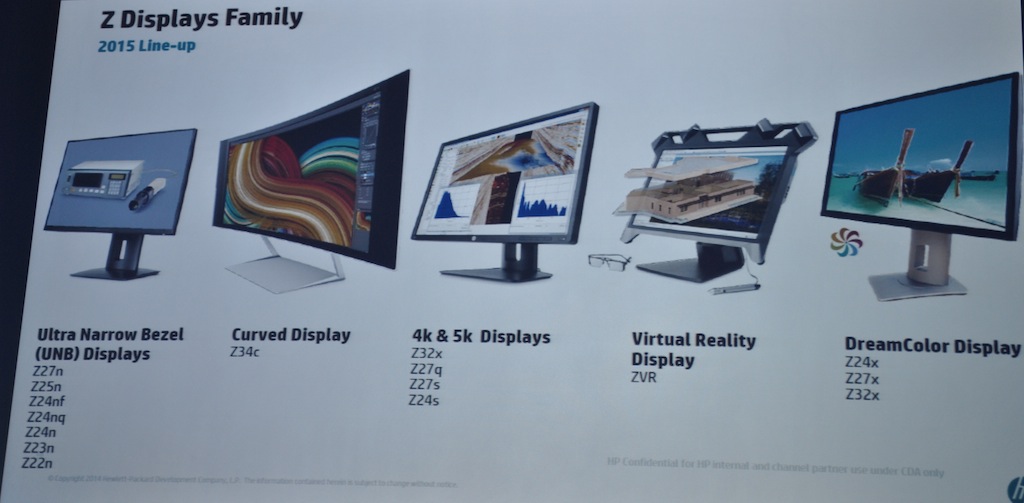 La gamme de moniteurs HP se concentre sur les nouveaux modèles Z27 et Z24, avec ultra haute définition (UHD) 4K, et sur le système 5K Z27q, spécialement conçu pour augmenter la productivité en élargissant l'espace de travail visuel et en connectant plus d'appareils, que l'entreprise a montré au CES 2015.