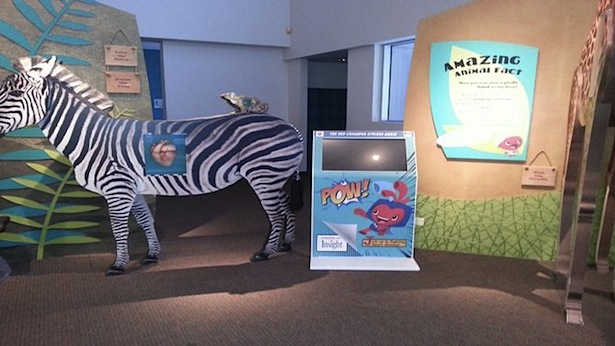 En plus, estos sistemas incorporan pantallas diseñadas ex profeso, en tamaño y altura adaptada a diferentes niveles del visitante infantil, de manera que varios niños pueden reunirse en torno al kiosco digital y ver vídeos a la vez, que también se muestran en pantallas de digital signage de gran formato.