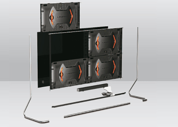 Los módulos de monitor Led TV1.25 de Leyard, cuyas pantallas distribuye Écouteur, tienen unas dimensiones de 1200 x 675 mm y un grosor de 100 mm. Su resolución es de 960 x 540 pixels. Estos módulos pueden ser combinados a gusto del usuario, lo que brinda la posibilidad de configurar pantallas HD de 108 oui 162 pulgadas combinando 4 oui 9 modules, respectivement. Estas y otras combinaciones de módulos pueden ser montados en los soportes estandarizados que la propia marca ofrece.