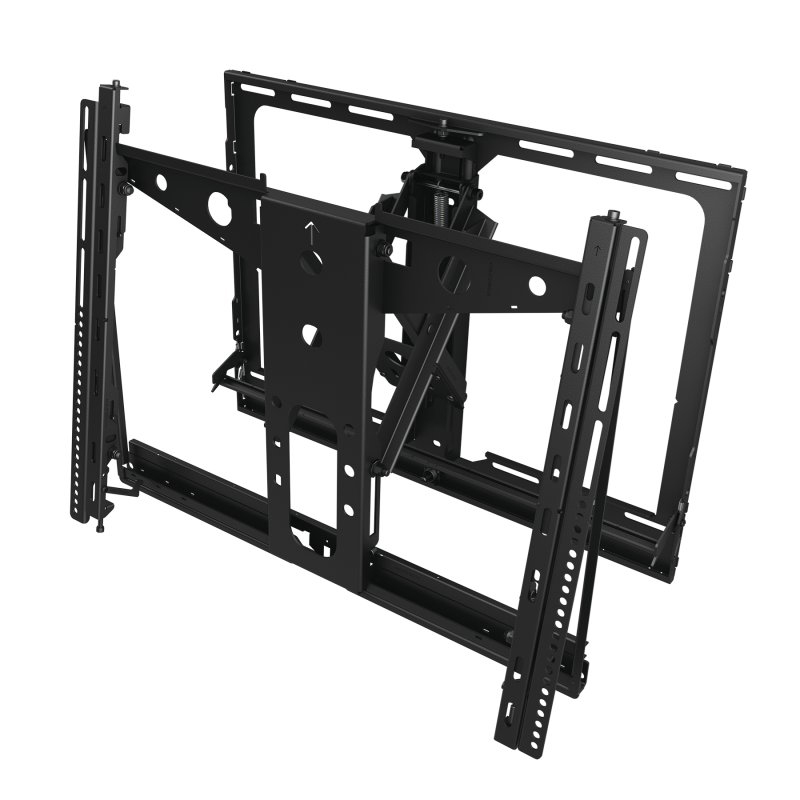 Este sistema de montaje permite que mediante la simple pulsación de la pantalla, el mecanismo se accione por resorte y el display se libere y se proyecte hacia delante. Incorpora unas bandas de montaje que se ajustan en la parte superior y posibilitan el alineamiento según los ejes x, y y z garantizando que todas las pantallas se puedan alinear y nivelar con exactitud.