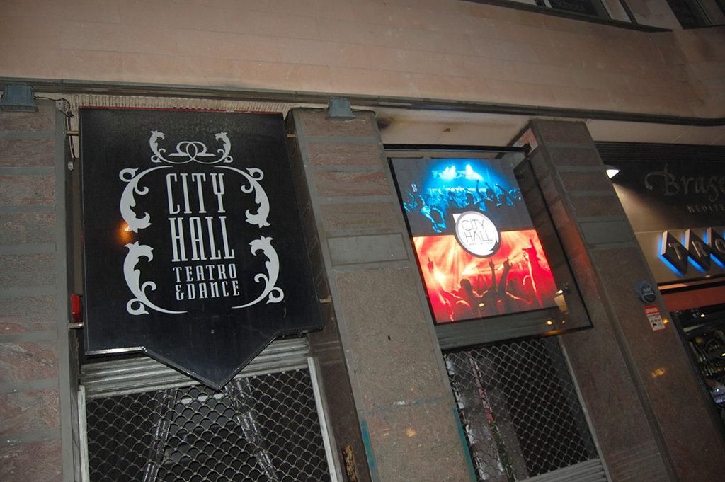 Dirigé&Go ha instalado una pantalla Led, con tecnología de Píxel Pitch 5mm y 4.000 lentes de luminosité, en la fachada del local nocturno City Hall de Barcelona con objeto de atraer la atención de los transeúntes e informarles de los eventos que se celebran en el recinto.