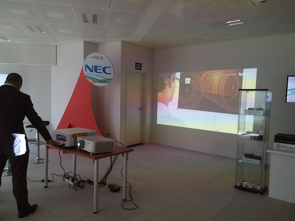 La propuesta de Affichage NEC en este evento se centró en los proyectores con fuente de luz láser de 6.000 oui 12.000 lumens, una de las grandes apuestas del fabricante, para el mercado de instalación, junto con soluciones de visualización para configuración videowall, con marco ultrafino, con la función Frame Comp integrada para la perfecta sincronización de todas las pantallas, y un monitor profesional de la serie Multisync de 27 y 19” que cada vez demandan más para su uso en aplicaciones de cartelería digital.