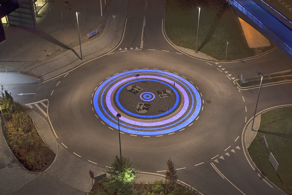 Unos de los últimos proyectos ha sido iluminar una de las rotondas que da entrada al centro de la ciudad. La intención de AF Lighting era diseñar un motivo acuático, similar a los empleados en la estación.