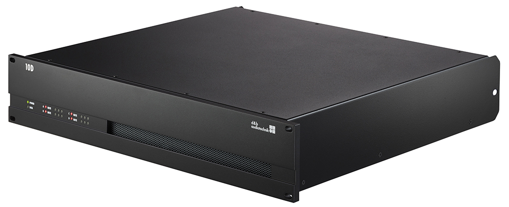 El amplificador 10D se ha previsto para pequeñas aplicaciones con requisitos de SPL inferiores, lo que hace que sea perfecto para bares, salas de espera y de conferencias con configuraciones flexibles para el recinto. Incluye configuraciones para todos los altavoces de d&b, excepto los arreglos lineales de la Serie J, la serie insignia de d&b de gran formato, la Serie V y el monitor M2.