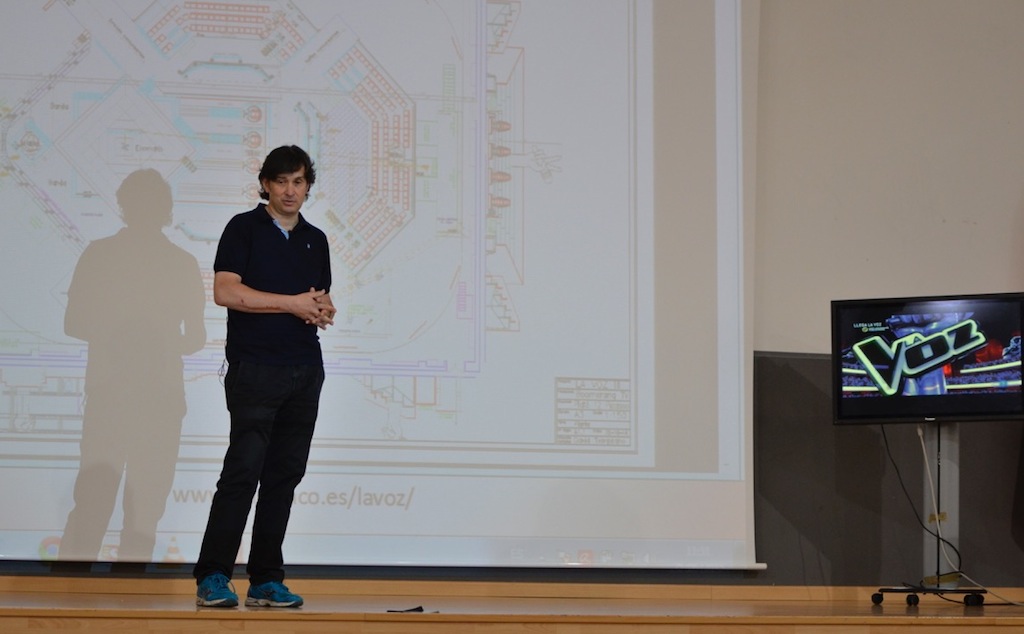 Iñaki Irastorza realizó un recorrido por los diferentes platós que tiene la fase final de este programa, mientras explicaba la distribución del sistema lumínico, la disposición de cámaras, pantallas de vídeo y de los decorados, además de atender a todas las cuestiones y dudas referentes a los métodos de trabajo, utilización de recursos y otros secretos profesionales que realizaron los asistentes.