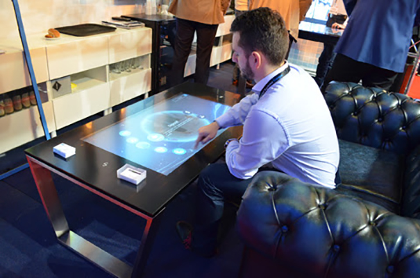 @Table es la nueva mesa multi-táctil interactiva en la que se ha integrado la tecnología proyectada capacitiva, consiguiendo una solución robusta de 42 pouces, idónea para el entorno retail, restaurants, hôtels, banca y hospitales.