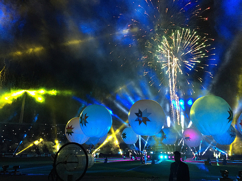 La instalación y suministro de las luminarias ha sido realizado por la empresa chilena Orbita Producciones, bajo la dirección de programación de Toni Amorós, quien trabajó en colaboración directa con el director creativo del show, Esteban Icardi, de Icardi Producciones, para el desarrollo de la ceremonia de apertura, que se transmitió en directo por televisión en Chile Films, Canal 13 y TVN.