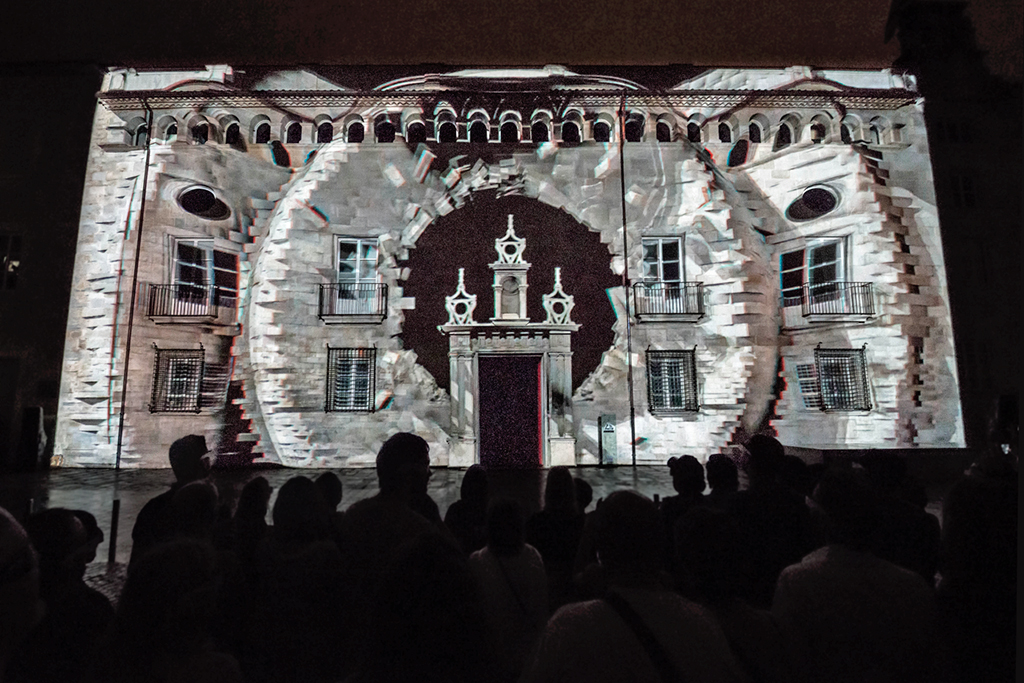 El Festival Internacional de Girona (FIMG) inauguró su segunda edición con la proyección en la fachada de Santa Caterina del mapping 3D anaglifo, Diplopia. Un trabajo creado por la empresa catalana Oignons con una técnica que permite mostrar imágenes en 2D que provocan un efecto tridimensional cuando se ve con gafas especiales.