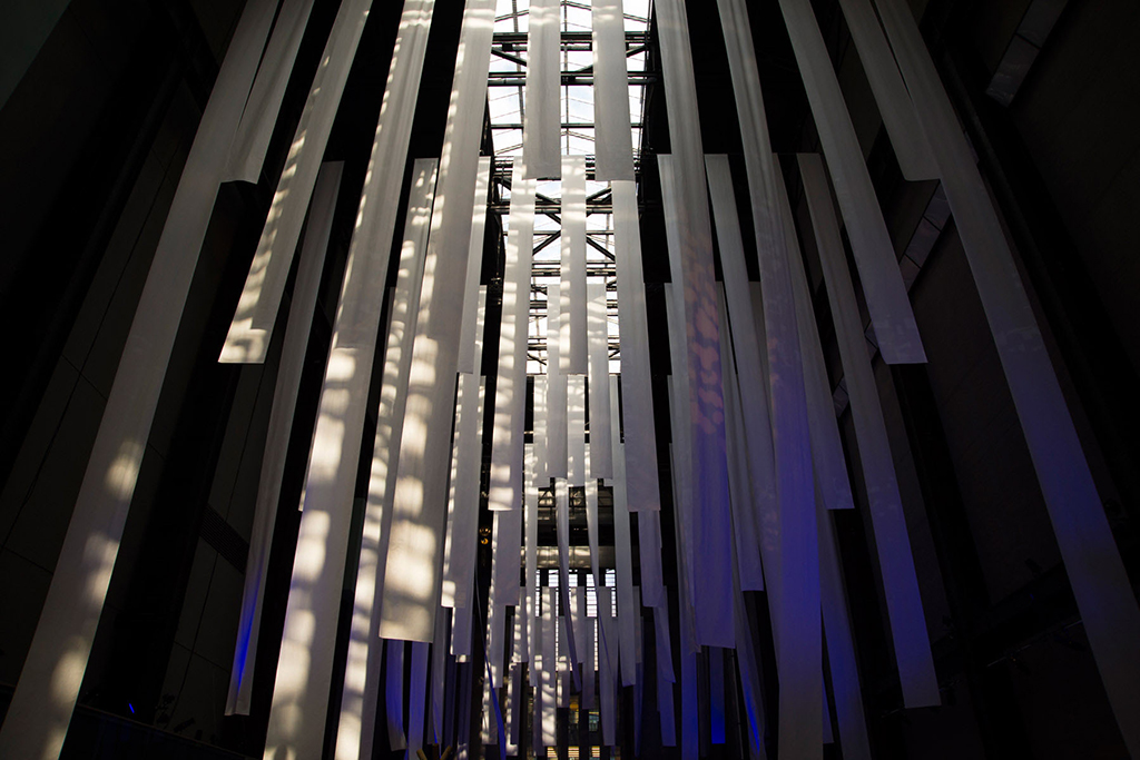 Compte tenu des caractéristiques de la pièce et de sa hauteur 35 métros, Wilson-Wright a décidé de changer l'apparence de la salle Turbine. Et pour ce faire, il a utilisé des dizaines de bandes de papier ignifuge jusqu'à 25 mètres de long qui pendait au plafond, offrant une combinaison de lumières colorées, et sur lequel était projetée une subtile projection qui changeait au fil de la journée.