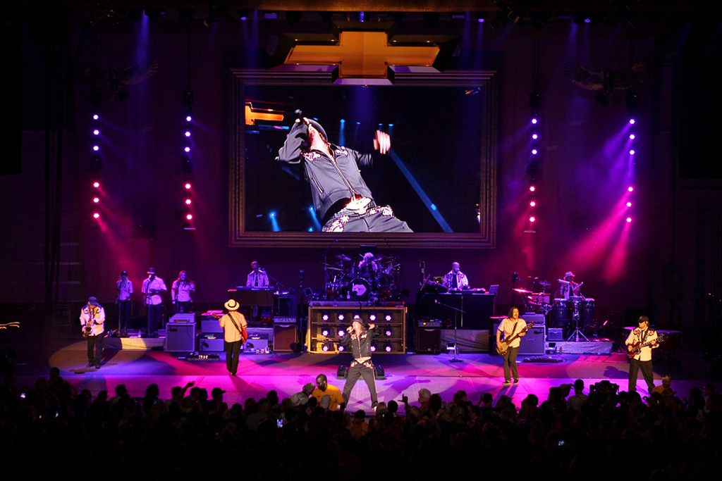 En esta instalación de iluminación se están utilizando 15 unidades de cabeza móvil Led Elation Rayzor Q7, instaladas al fondo del escenario, tras Kid Rock, en una estructura a nivel de suelo sobre la que se eleva el espacio en el que toca el batería del grupo.