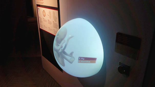 La technologie de rétroprojection de Panasonic joue également un rôle de premier plan dans la salle « Développement fœtal embryonnaire », une exposition qui présente un écran hémisphérique qui imite un utérus. Les visiteurs peuvent voir comment les images de l'embryon grandissent et changent au cours du processus de gestation.