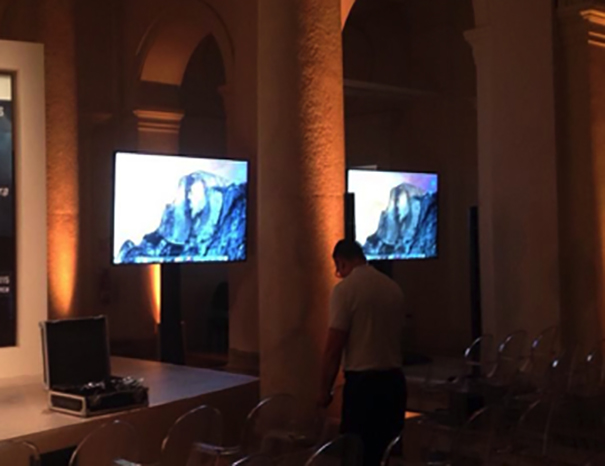 Pour répondre à cette stratégie, Solutions de caverine leur a fourni une commande d'écrans NEC 4K haute résolution en grand format avec 98 pouces qui nous permettent d'offrir plus de qualité d'image lors d'événements.