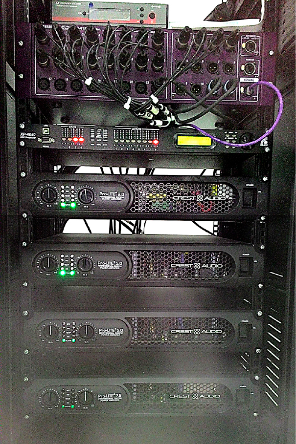 La amplificación tanto para el sistema de sonorización principal como para el sistema de refuerzo de sonido en las primeras filas de butacas (tarea de la que se ocupan los recintos Mask 6) es aportada por etapas de potencia Crest de la serie ProLite.