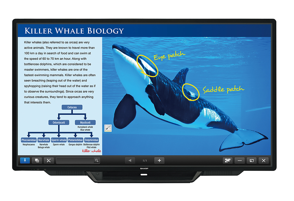Este equipo, que se basa en la gama de pizarras digitales interactivas de Sharp, cuenta con una pantalla de 80 pulgadas rápida, sensible e intuitiva. Reconoce hasta diez puntos de contacto simultáneos, gracias a su algoritmo de muestreo de 220 Hz y permite que hasta cuatro personas puedan escribir al mismo tiempo con sus lápices inteligentes rápidos, sensibles y precisos.
