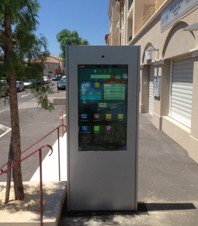 Disponible sur le marché espagnol via Macroservice, Ce totem extérieur numérique comporte un 75 pouces et technologie d'affichage de pointe développée par la multinationale sud-coréenne de systèmes visuels pour l'affichage numérique.