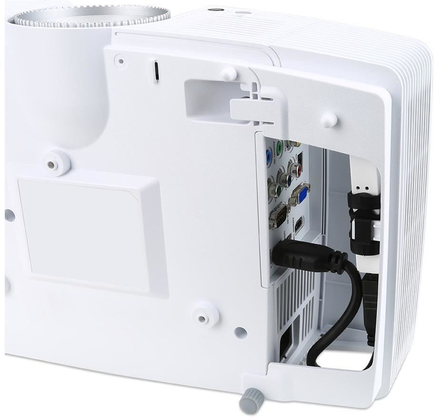El diseño de la lente central permite que el proyector V7500 se pueda instalar tanto en el centro del espacio como en el techo, mientras que el zoom de 1.36x elimina la necesidad de que el usuario tenga que mover el sistema una vez que lo ha instalado en la zona elegida, que queda limpia de cableado gracias a su cubierta de cables extraíble.