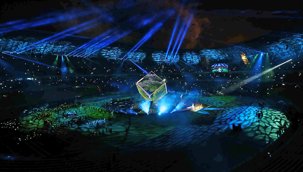 GL Events Audiovisual, empresa subsidiaria de GL Events Group, se encargó de la ceremonia de clausura de estos Juegos, asumiendo la iluminación, el vídeo y el sonido. Para conseguir los mejores resultados en la instalación, utilizaron 18 cabezas móviles LED G-Spot de SGM con una certificación IP65. El diseñador de iluminación francés Vincent Mongourdin trabajó los aspectos visuales del show en colaboración con el director del evento Martin Arnaud.