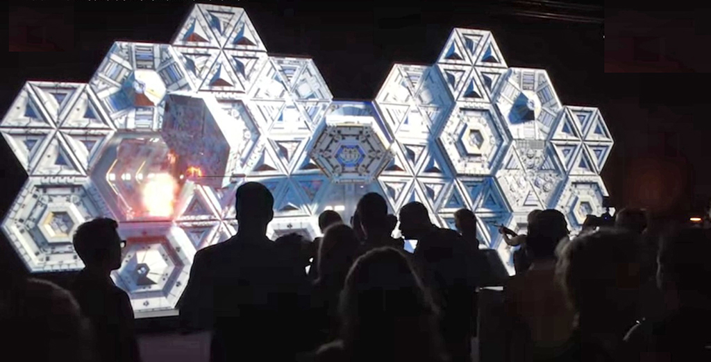 Dans cette cartographie, un scénario futuriste a été recréé qui invitait les joueurs à interagir simultanément à l'aide de pointeurs laser., vivre une expérience multimédia en temps réel.