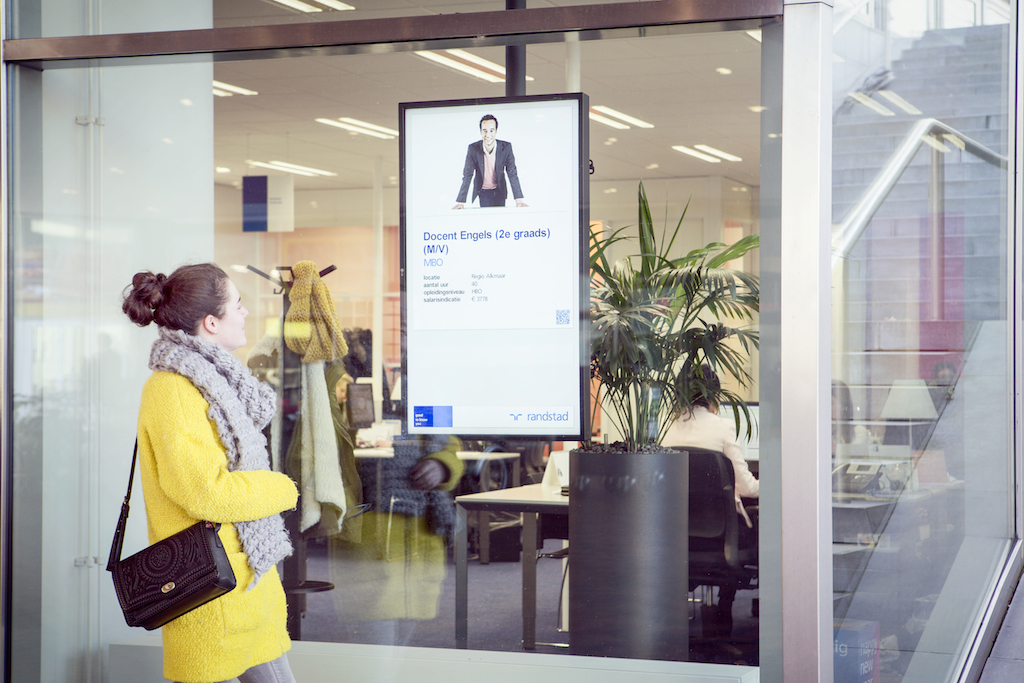 Avec une histoire de plus de 54 años en el mercado de servicios de recursos humanos, Randstad, con sede en los Países Bajos, est présent dans 39 países del mundo con una plantilla de más de 28.700 employés. Con el objetivo de atraer a nuevos candidatos con una nueva plataforma de comunicación, la multinacional ha recurrido al integrador de soluciones de digital signage QYN, socio de Échelle en la zona del Benelux, para renovar 140 oficinas con tecnología de digital signage y contenido visual dinámico, como elemento diferencial ante su competencia.
