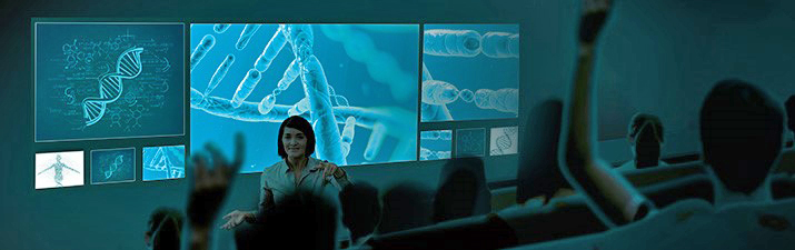 Los proyectores de ultracorta distancia crean grandes y brillantes imágenes sobre pantallas, pizarras o la pared, ce qui économise de l'espace, al tiempo que los reflejos y las sombras se reducen. Esto permite que los profesores puedan ofrecer presentaciones más interesantes a sus estudiantes.