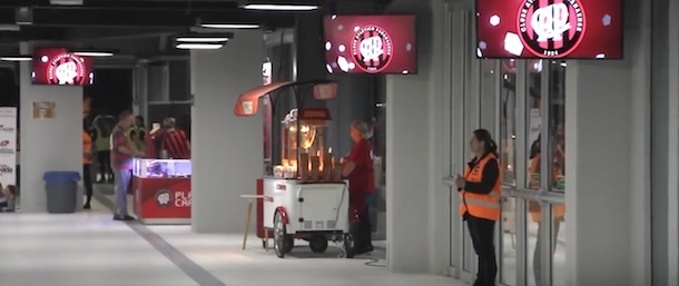 Ahora sus responsables han querido dar un paso más allá en la comunicación y relación con sus aficionados confiando nuevamente en la filial brasileña de Panasonic, que ha instalado el primer sistema hasta ahora de digital signage que ofrece visibilidad completa de lo que sucede en la cancha en todo el recinto, para que ningún seguidor se pierda detalle de lo que ocurre en la cancha.