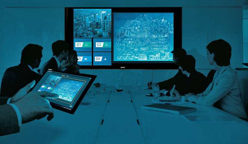 La solution de salle de réunion collaborative de Sony, Présentateur Vision, il est également affiché sur ISE 2016 avec interaction sur écran tactile.