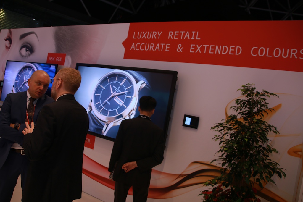 Destaca también en su espacio expositivo la nueva y completa gama de monitores LFD (large format display), en formatos desde 32 hasta 65”, desarrollada por la compañía con el sistema integrado en el chip.