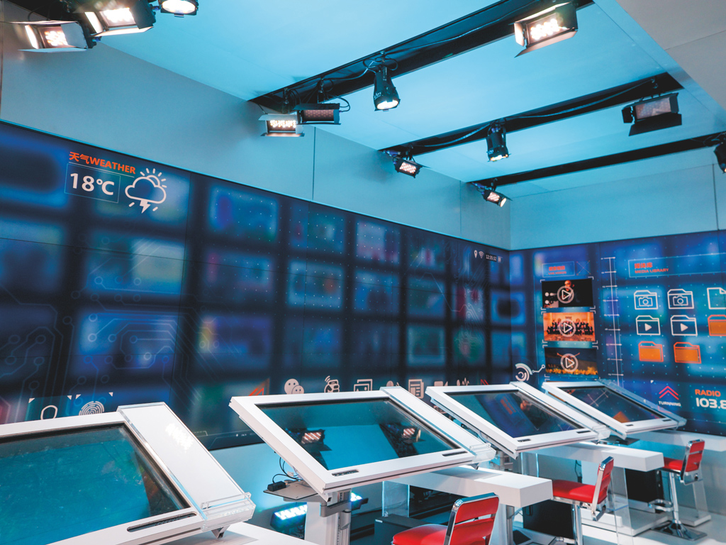 Deux murs vidéo ont été installés dans le studio, en format 6×4 et 8×3, composé d'un total de 48 écrans. Pour sa configuration, les cubes de rétroprojection DLP EC-60-LHD-1000 ont été utilisés et sont utilisés pour offrir du contenu de fond lors des émissions d'information., ainsi que des interviews et des connexions en direct.