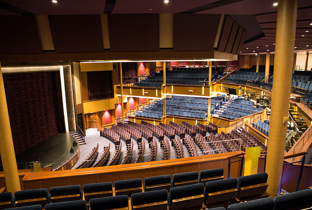 En el interior de este trasatlántico se han creado dos teatros donde cada día se ponen en escena diferentes espectáculos musicales en los que tienen un papel protagonista las técnicas audiovisuales.