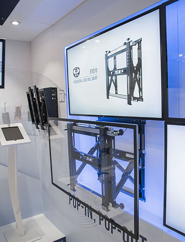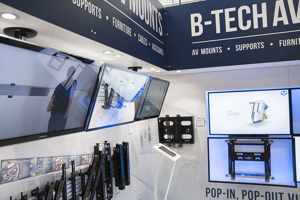 B-Tech dispone de una completa oferta de soluciones para digital signage, desde pantallas individuales a videowalls de gran formato y tableros de menú. Al igual que ocurriera en ALORS QUE 2016, en Londres también tuvo una gran acogida el sistema pop-in BT8310 y la gama System X.