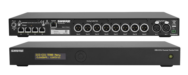 La unidad de control central DIS-CCU de DIS by Shure es un sistema que permite la gestión de los sistemas DDS5900 y DCS6000, que sustituye a las unidades centrales anteriores CU5905, CU6105 y CU6110, simplificándolas y mejorándolas.