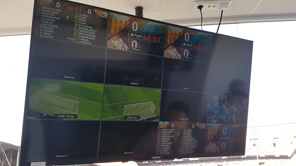 El estadio de Mestalla, propiedad del Valencia Club de Fútbol, ha modernizado su sistema de producción audiovisual con dispositivos del fabricante Conception Blackmagic con objeto de brindar a los aficionados durante los partidos la mejor información, animación y espectáculo en los cinco videomarcadores Led (uno de ellas de 50 m2 y el resto de 40 m2) ubicados en las gradas y tribuna con un servicio sincronizado en todo el recinto.