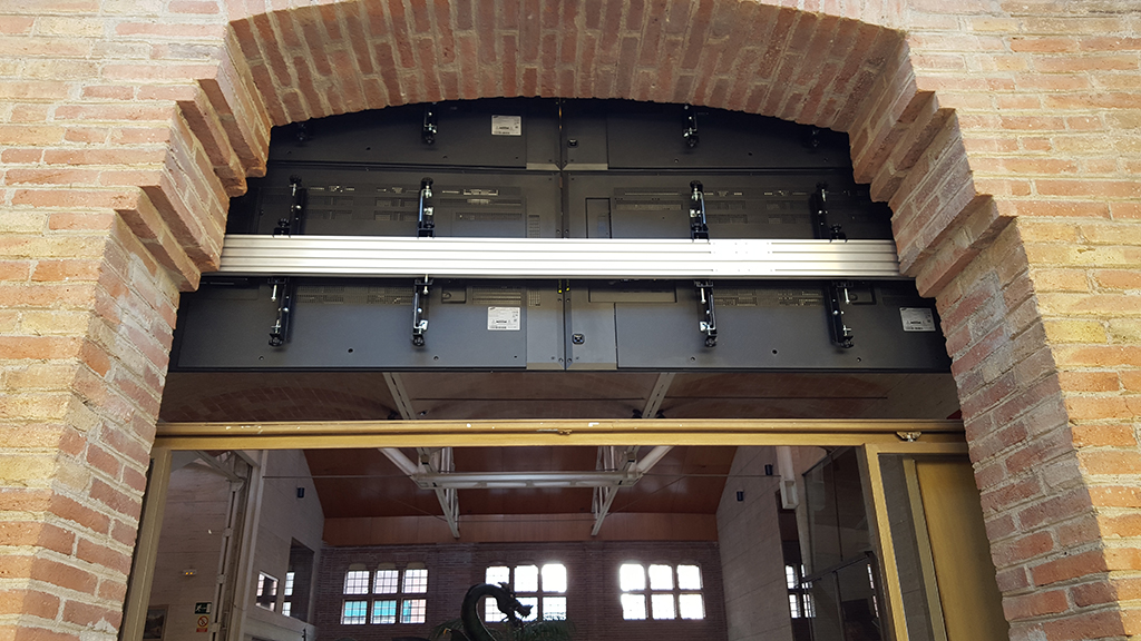 Asegurar la estructura histórica del edificio y adaptarse al espacio donde se había decidido instalar el videowall de 2×2 son algunos de los retos a los que da respuesta el soporte System X.