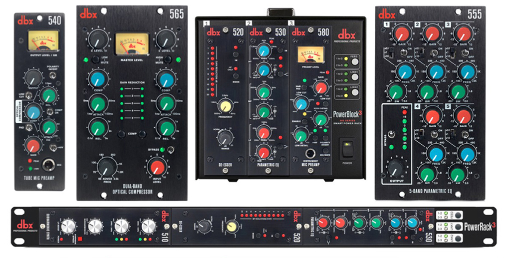 En plus, dbx también ha presentado los sistemas PowerBlock3 y PowerRack3, que incluyen fuentes de alimentación para alojar hasta tres módulos de la serie 500.