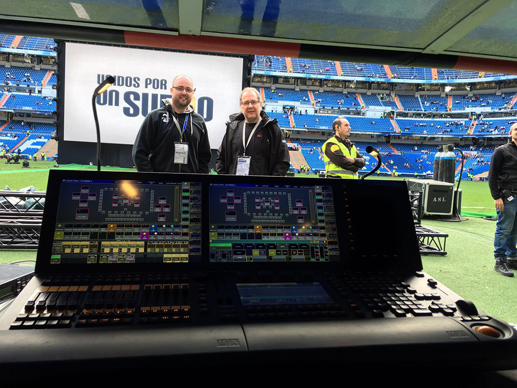 La victoria de la Copa de Europa conseguida en Milán fue celebrada en el Santiago Bernabéu con un espectáculo de luz y color proporcionado por las cabezas móviles Mythos y Sharpy, y las consolas GrandMA Light y Full-Size.