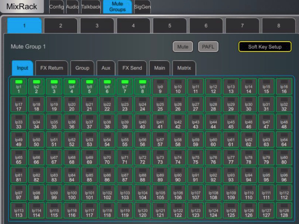 La nueva actualización de firmware añade ocho grupos específicos de Mute sobre los veinticuatro grupos DCA de dLive. En ce sens, es posible asignar canales utilizando la pantalla de los grupos MixRack/Mute y asignando una SoftKey para controlar el mater de Mute para el grupo. También permite configurar múltiples buses PAFL cuando trabajan simultáneamente dos ingenieros, Par exemple, en FoH y en monitores, compartiendo el mismo sistema dLive.