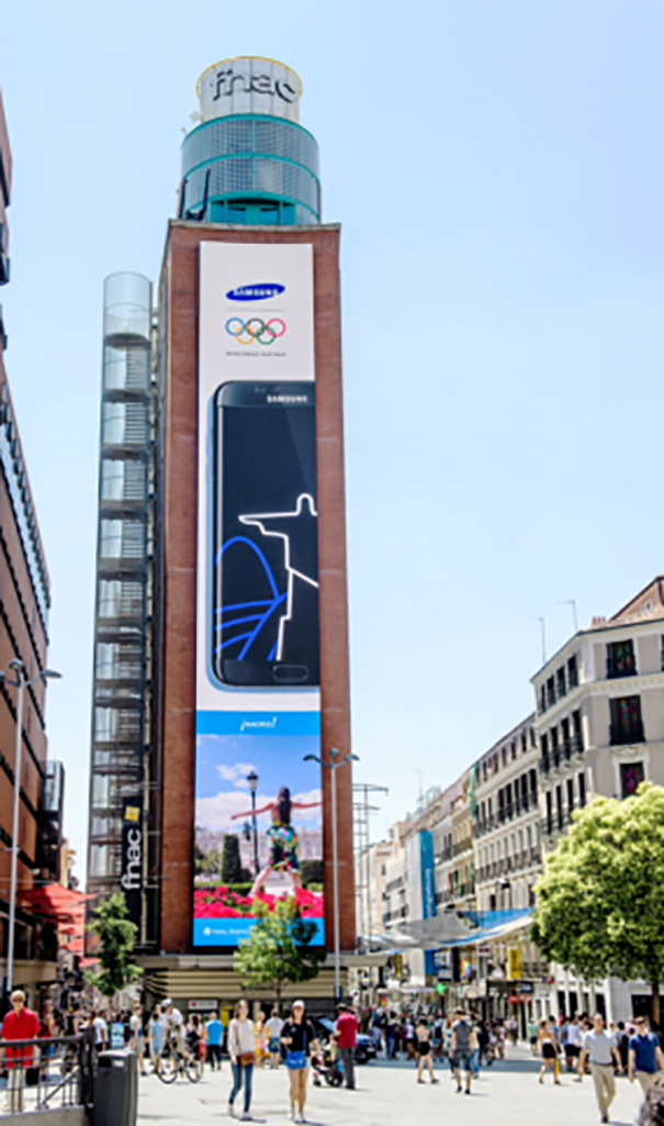 Avec une surface de 240 mètres carrés, ce support extérieur, Conçu avec la solution d'affichage Samsung P6, est devenu un lieu privilégié des annonceurs pour capter l'attention des passants.
