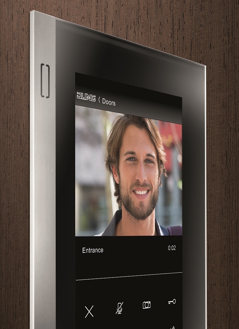 Entre otros sistemas domóticos de Jung instalados en esta habitación-stand destacan Smart Control 7, los mecanismos LS Zero y el detector de presencia mini para KNX.
